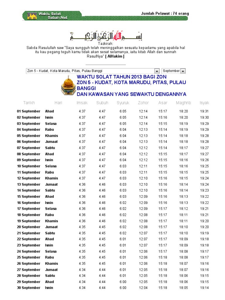 Xls Jadual Waktu Solat 1437 Seluruh Sabah Pusat Islam Ums Academia Edu